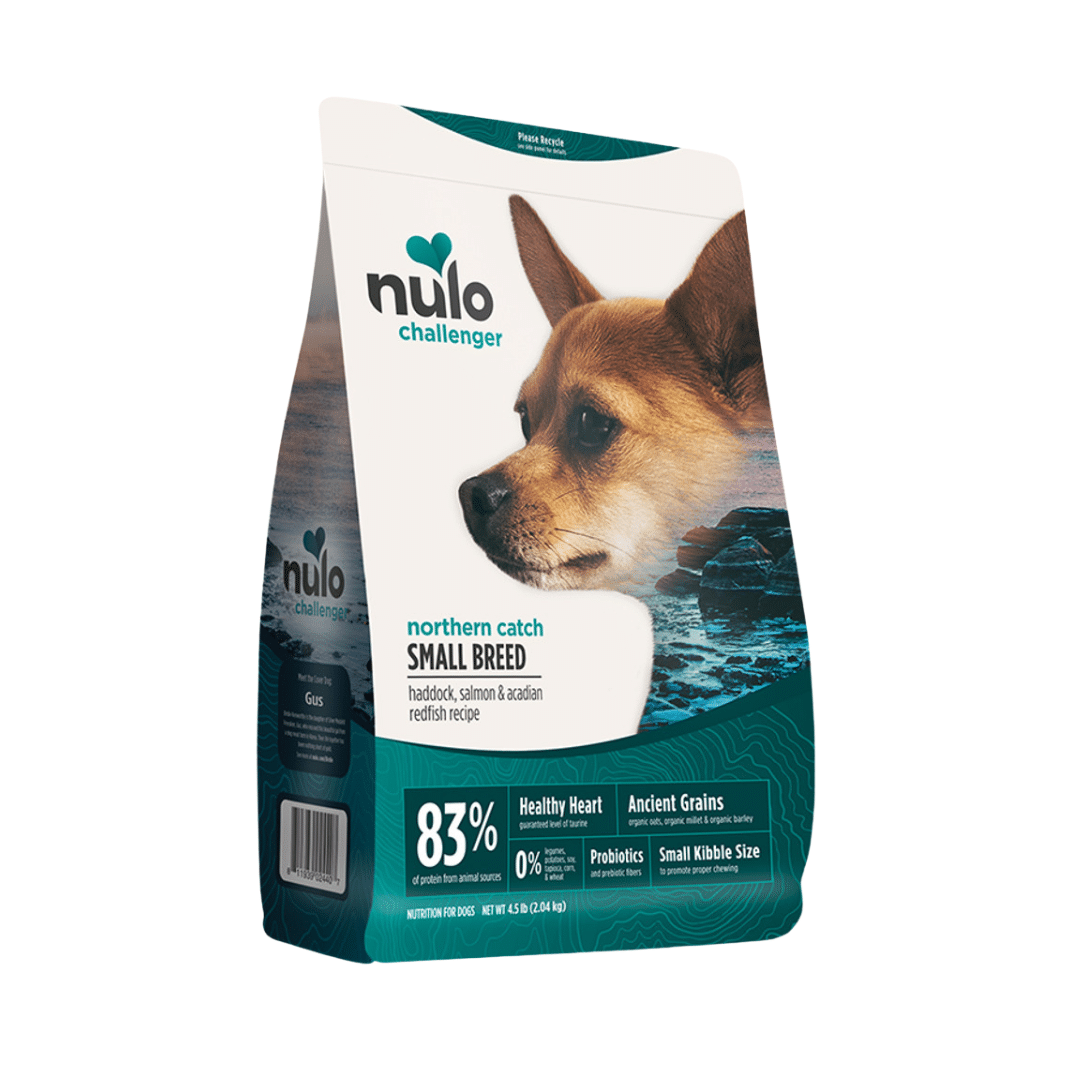 Nulo Challenger Small Breed Haddock, Salmon N Acadian Redfish – 4.5 lb is the new grain-inclusive standard, offering ultra-high-meat dry dog foods and Hearty Stews with Certified-Organic grains like oats, millet, barley, and rye.